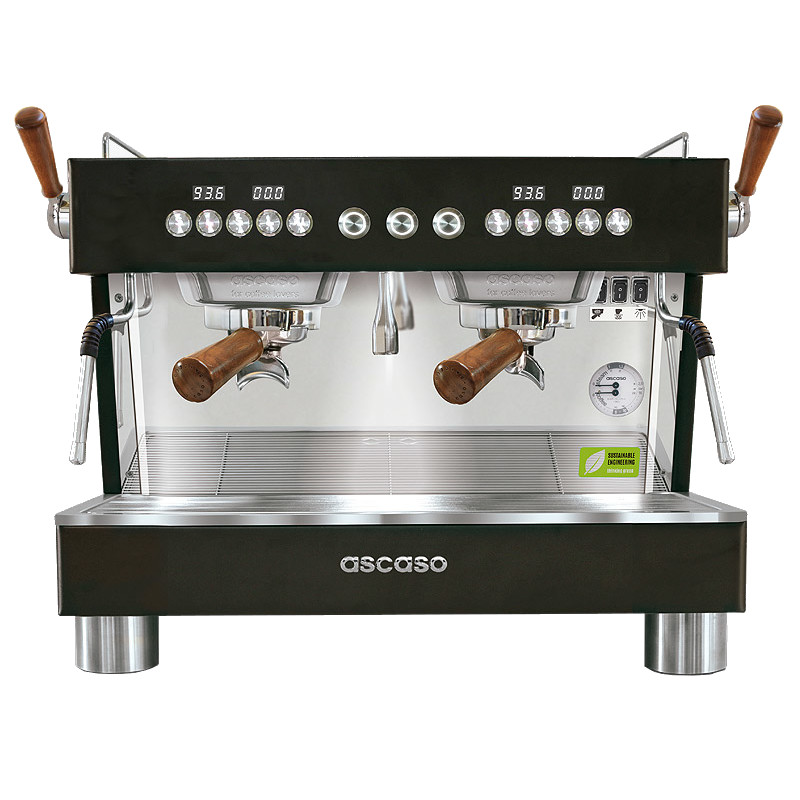 Inovativní profesionální kávovar Ascaso Barista T 2GR COMPACT je skvělou volbou pro kavárny. Díky unikátní T technologii od Ascasa kávovar nabízí skvělou teplotní stabilitu (+/- 0,5 °C) i v nepřetržitém provozu a také nízkou spotřebu energie a minimální provozní náklady. Přístroj disponuje objemným pracovním bojlerem, který dodává silnou profesionální páru pro přípravu mléčných specialit. Každá hlava kávovaru má svůj termoblok a vlastní PID regulaci – jednotlivé hlavy jsou na sobě nezávislé. Lze na nich nastavit rozdílné teploty, případně mít zapnutou pouze jednu. Velký důraz je kladen na nezávadnost a kvalitu použité vody – bojler a hlavy kávovaru jsou z nerezové oceli, uvolňování nežádoucích látek a kovů do vody je oproti mosazným či měděným dílům minimální. Navíc voda pro extrakci kávy v přístroji nikde nestojí a není opakovaně ohřívaná. Z vodovodního řadu jde čerstvá přímo do šálku. S kávovarem se dobře pracuje. Přístroj je navržený pro snadnou údržbu – demontáž je jednoduchá a k důležitým komponentům je dobrý přístup. Špičkový stroj, který odpovídá nejmodernějším trendům. Doporučujeme.