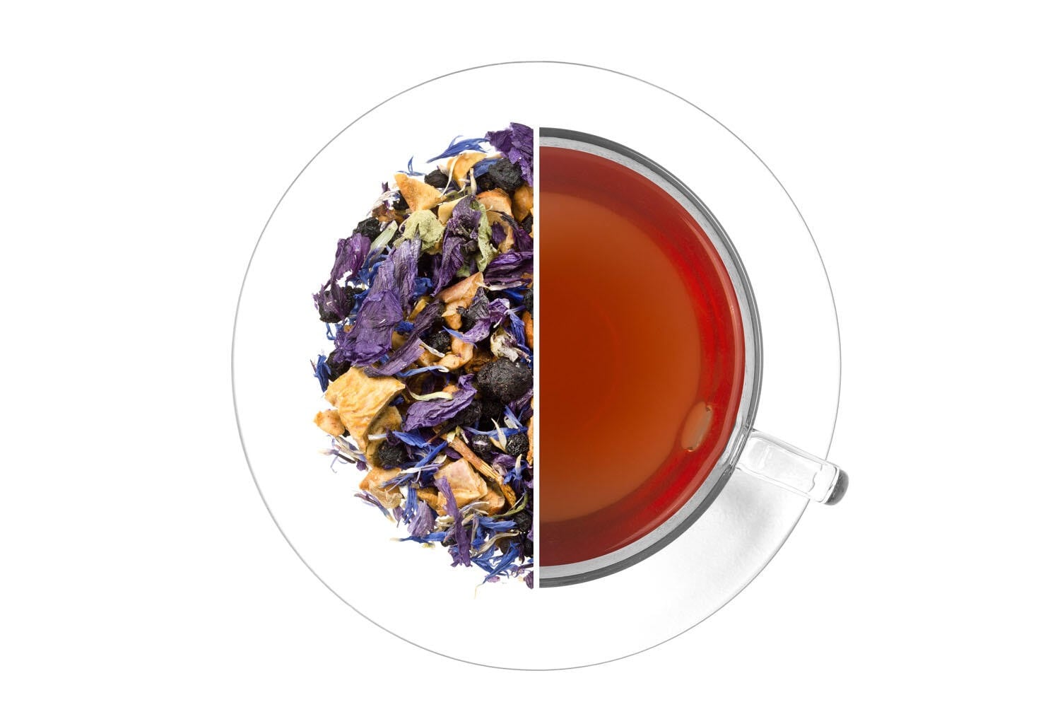 Jablka, černý bez plod, borůvky (8,3 %), červená řepa, květy sléze a chrpy, přírodní aroma. Může obsahovat stopy skořápkových plodů.