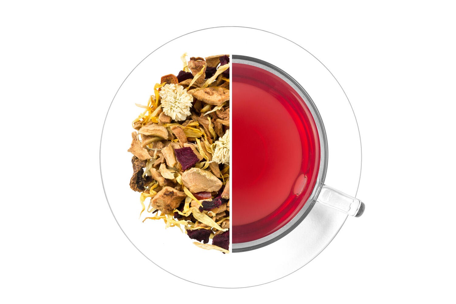 Jablka, šípek, červená řepa, citrónová kůra (4%), heřmánek římský, rozmarýn, měsíček květ, přírodní citrónové aroma, aroma. Může obsahovat stopy skořápkových plodů.