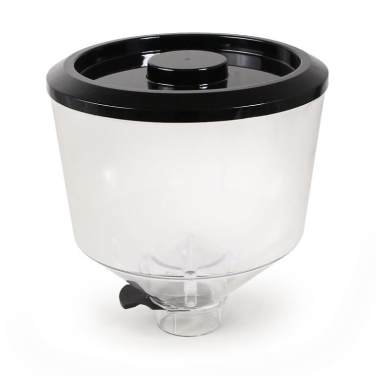Násypník pro mlýnky Eureka Atom s kapacitou 1200 g. Součástí balení je také víko a praktická závlačka na uzavření kávy v násypníku. Díky tomu můžete s násypníkem snadno manipulovat, i když je plný.