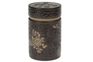 Praktická sada tří plechovek v jednotném designu s barevnými květy. Obsahuje malé, střední a velké provedení, takže se hodí na různé druhy čajů nebo jiných dobrot. Rozměry:200 g (88 × 88 × 113 mm)100 g (75 × 75 × 95 mm)50 g (60 × 60 × 80 mm)