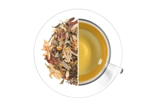 Rozinky (rozinky, slunečnicový olej), meduňka nať, fenykl plod, citrónová tráva list, šalvěj nať, heřmánek květ, růže květ, jasmín květ.