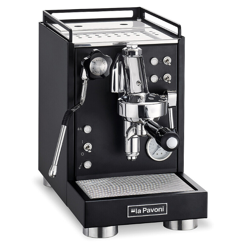 Pákový espresso kávovar La Pavoni Mini Cellini zaujme nejen svým vzhledem a moderním zpracováním, ale potěší i svými malými nároky na prostor. Díky šířce 24 cm je totiž velmi kompaktní. Jednoduše s ním připravíte dokonalé espresso i cappuccino v domácích podmínkách. Kávovar disponuje profesionální hlavou E61, bojlerem o objemu 0,8 l, vibračním čerpadlem a tlakoměrem. Model je vybavený Cool Touch tryskou na páru a horkou vodu, takže se při šlehání mléčné pěny nespálíte. Jedná se o precizně zpracovaný kávovar v elegantní matně černé barvě od italského výrobce La Pavoni.
