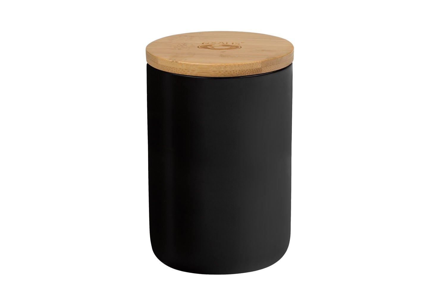 Porcelánová dóza s bambusovým víčkem se silikonovým těsněním pro uchování čaje nebo kávy. Černé matné provedení.
