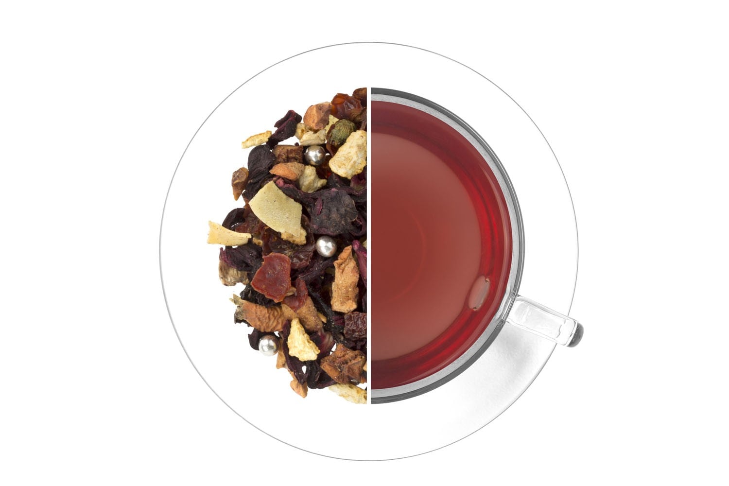 Ovocný čaj s ibiškem s kouzelnou. chutí sladkého karamelu a vánočního koření.